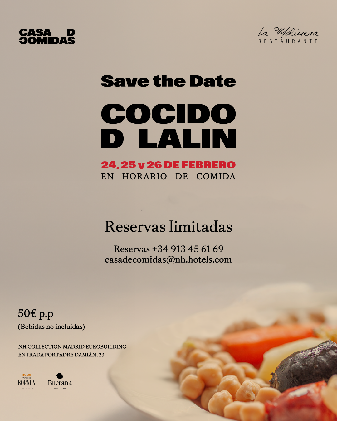 Envuelto en un ambiente acogedor y en una de las localizaciones más prestigiosas de la capital, Casa de Comidas enriquece la oferta gastronómica de la zona financiera de Madrid con una propuesta auténtica, reconfortante y llena de sabor en NH Collection Madrid Eurobuilding. Muy cerca se encuentra el famoso estadio Santiago Bernabéu y las estaciones de metro de Cuzco, Colombia y Santiago Bernabéu.